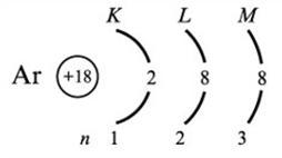 Атом аргона состоит из положительно заряженного ядра (+18), состоящего из 18 протонов и 22 нейтронов, вокруг которого по 3-м орбитам движутся 18 электронов.