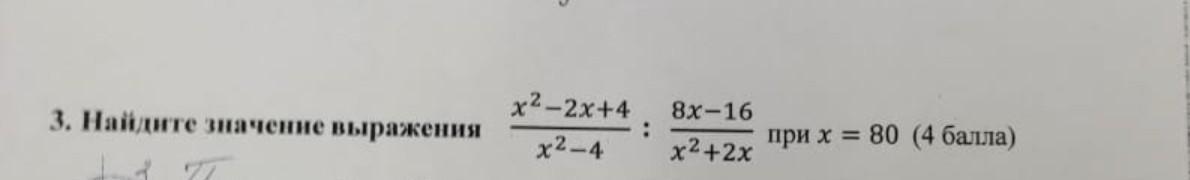3. Найдите значение выражения х? — 2х+4 : 8x-16 х2+2х х2-4 при х= = 80 (4 балла)помогите срочнооо