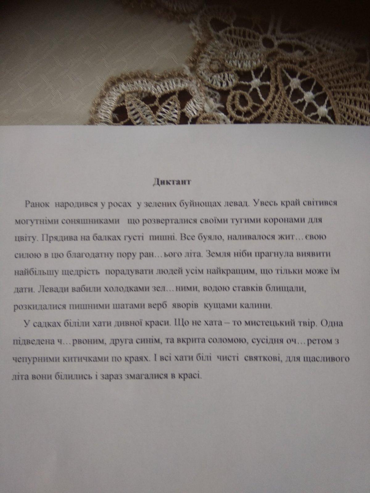Ранок народився у росах, у зелених буйнощах левад. Увесь край світився могутніми соняшниками, що розвертались своїми тугими коронами для цвіту .Прядива на балках густі , пишні.Все буяло , наливалося життєвою силою в цю благодатну пору раннього літа .Земля ніби прагнула виявити найбільшу щедрість , порадувати людей усім найкращим , що тільки може їм дати. Левади вабили холодками зеленими , водою ставків блищали, розкидалися пишними шатами верб, яворів , кущами калини.