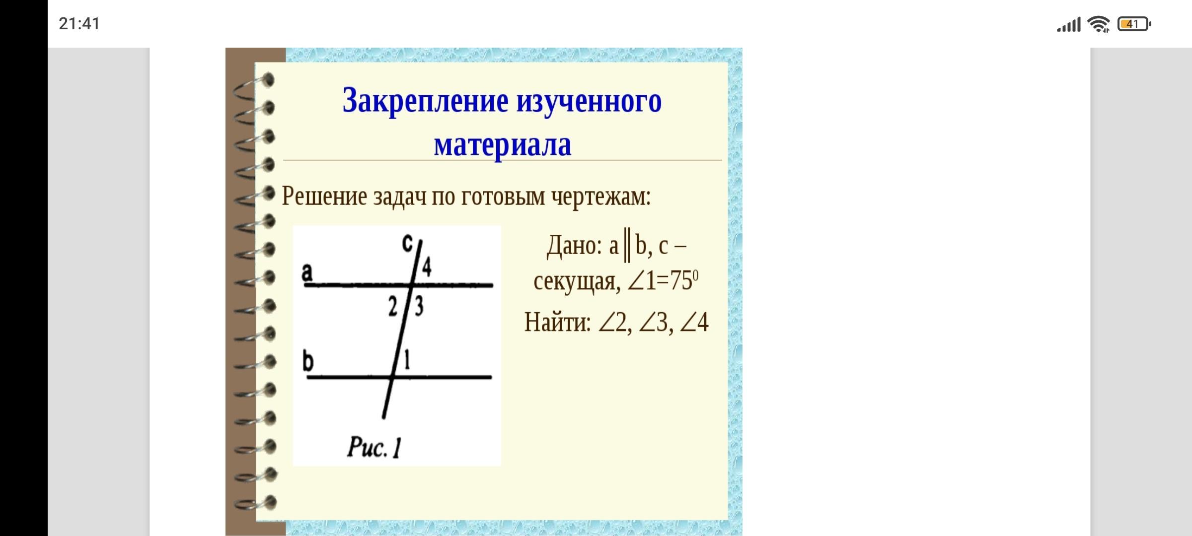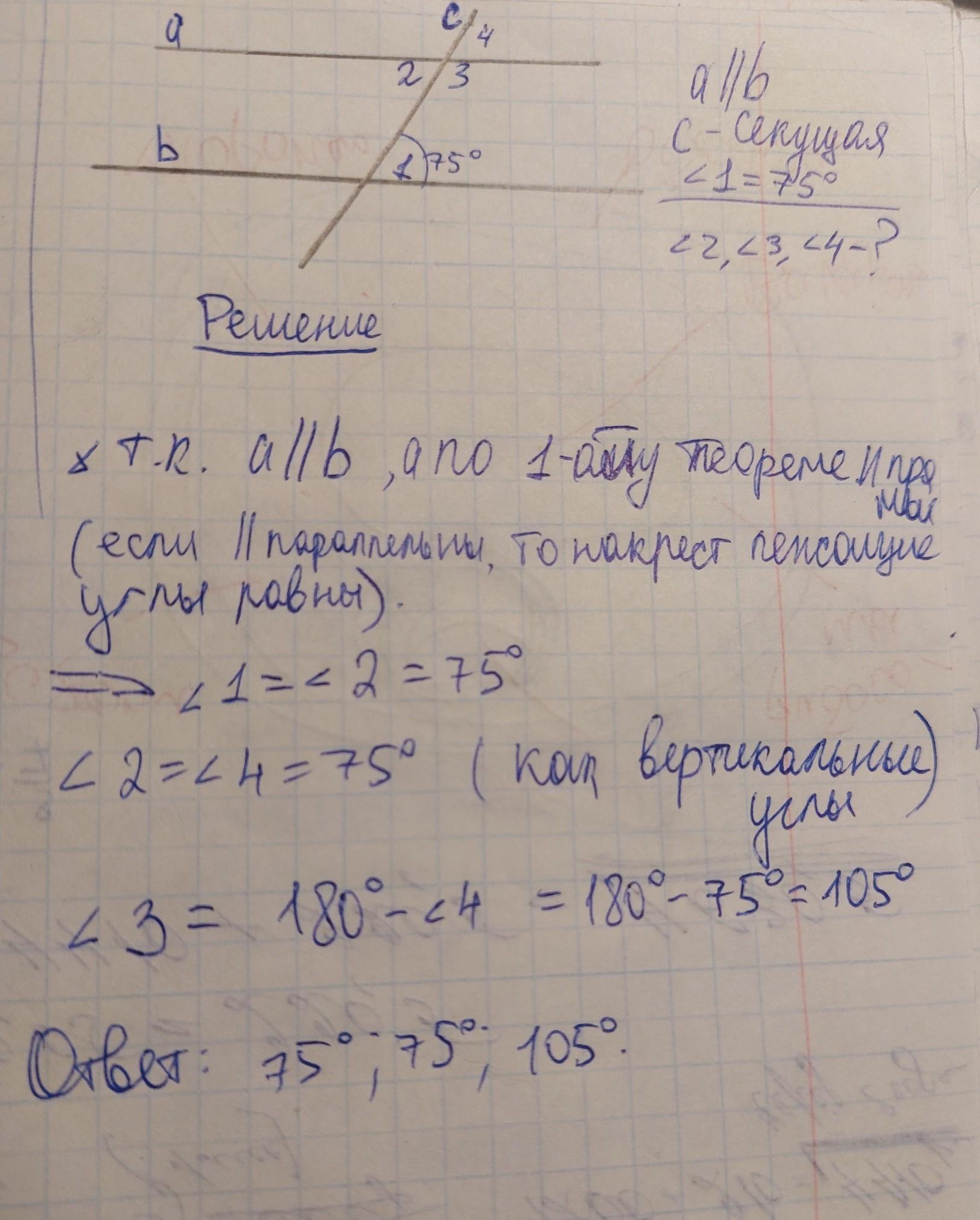углы: 2 = 75°, 3 = 105°, 4 = 75°