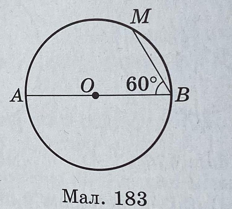 на діаметр АВ . ∠МАВ = 90° - ∠В = 90° - 60° = 30° . У прямокутному