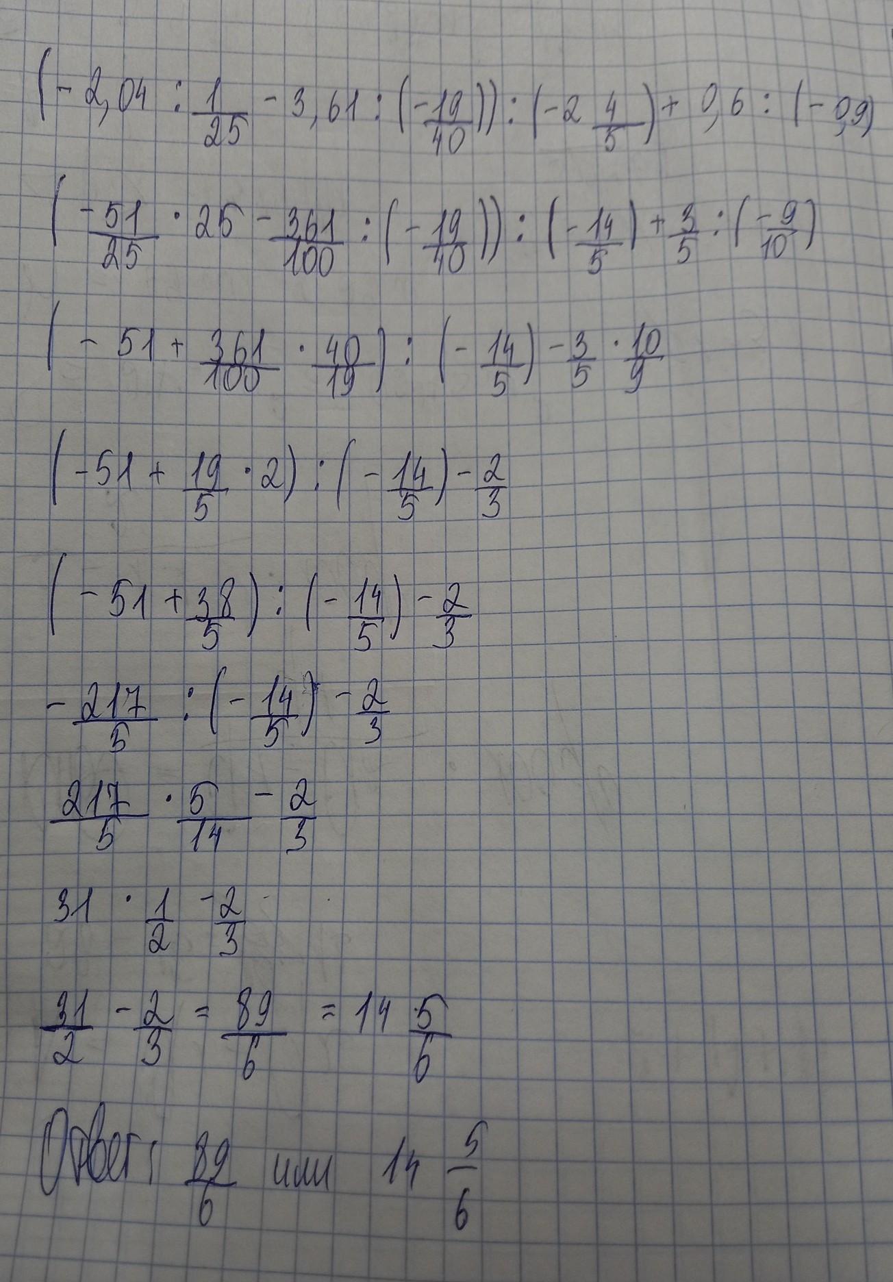 1) -2,04 : 1/25 = -2,04 : 0,04 = -51