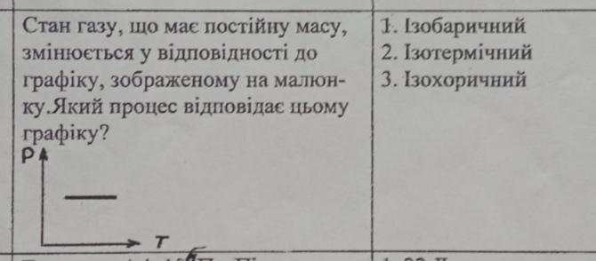 Відповідь: Процес ізобаричний (1), оскільки тиск, як видно з графіка сталий ( p=const)