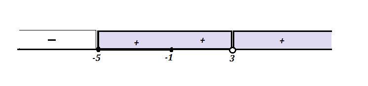 На числовой оси отметим точки -5 , -1 и 3 . Подсчитаем знаки функции в полученных промежутках: - - - - - [-5 ] + + + + + [-1 ] + + + + (3) + + + + +