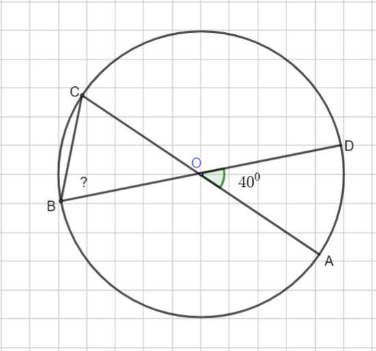 В окружности с центром в точке О отрезки АС и ВD-диаметры.Центральный угол AOD равен 40 градусов.Найдите угол DBC.Ответ дайте в градусах