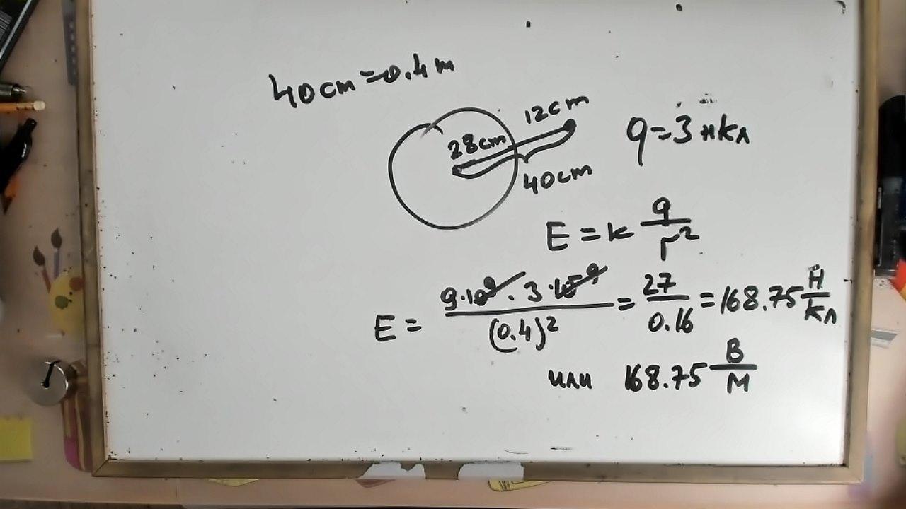 Определить напряжённость шара 28 см имеющего заряд -3 нано Кулон находится на расстоянии 12