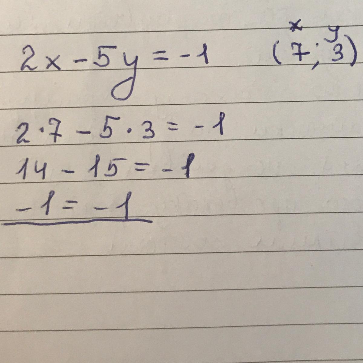 1. Какие из пар чисел (4;-2), (1;5), (8;2), (7;3) являются решениями уравнения 2х-5у=-1?