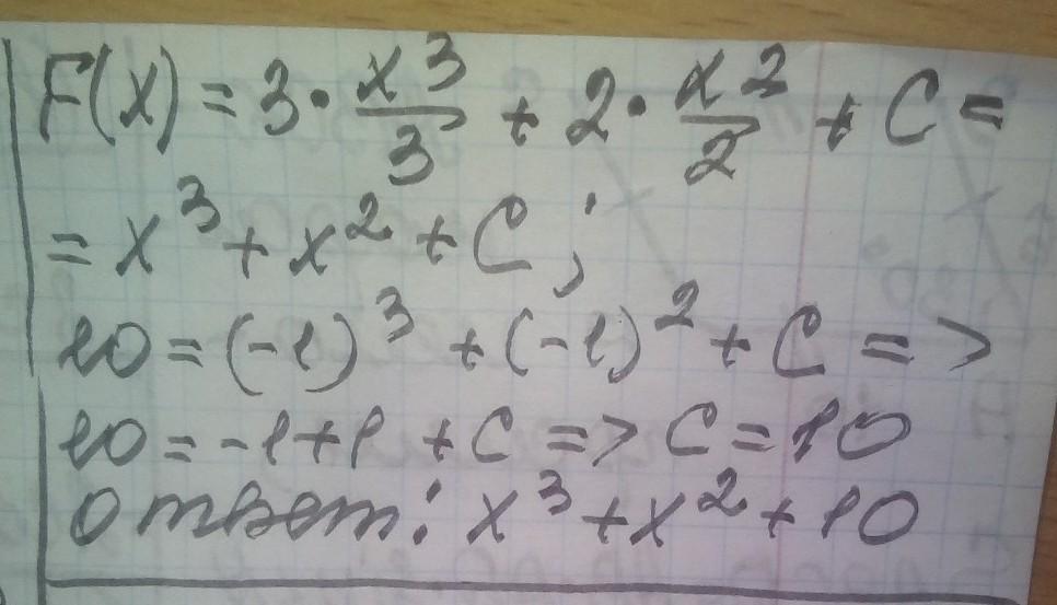 Найти первообразную функции f(x)=3x^2+2x проходящие через точку А(-1;10)