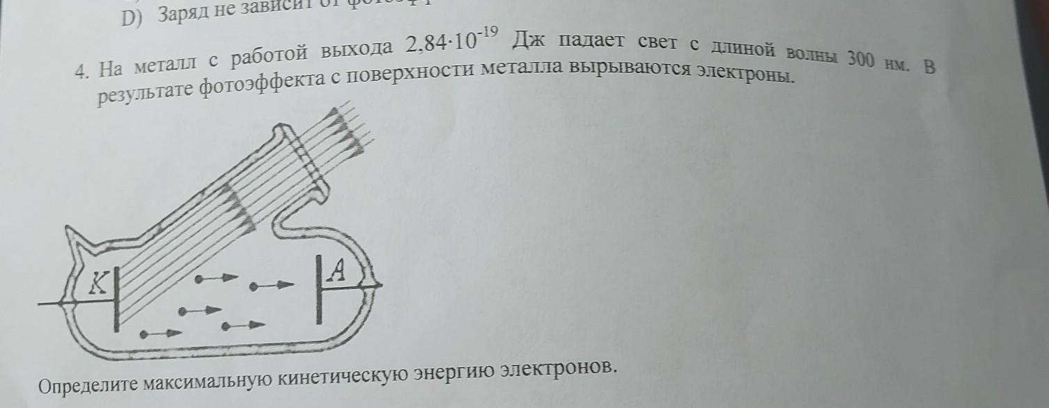 Дж падает свет с длиной волны 300 нм. В результате фотоэффекты с поверхности металла вырываются электроны