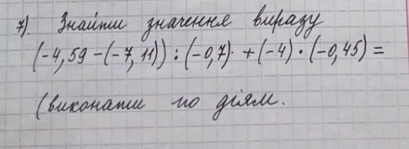 ( -4,59 - ( -7,11 )) : ( -0,7 ) + ( -4 ) * ( -0,45 ) = 2,52 : ( -0,7 ) + 1,8 = -3,6 + 1,8 = - 1,8.