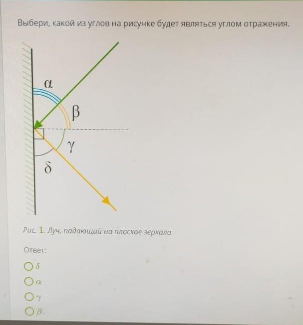 Угол отражения - это угол между отраженным лучом и нормальную, проведенной к точке падения луча.