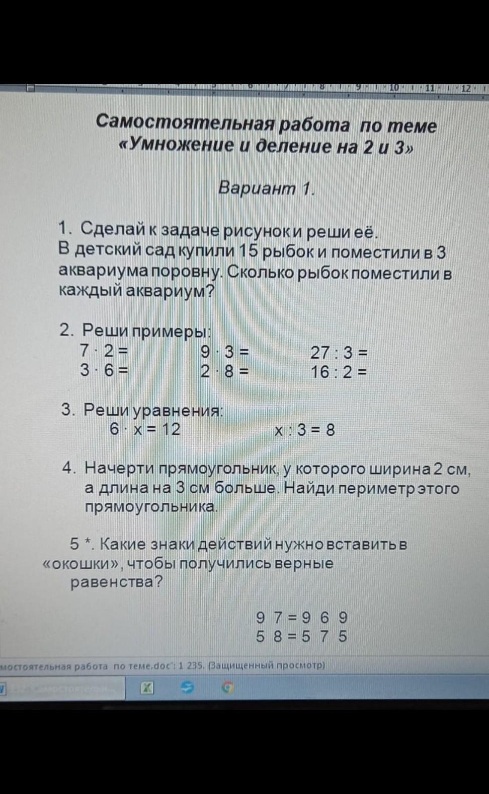1. Нарисуй 3 аквариума и помести туда по 5 рыбок