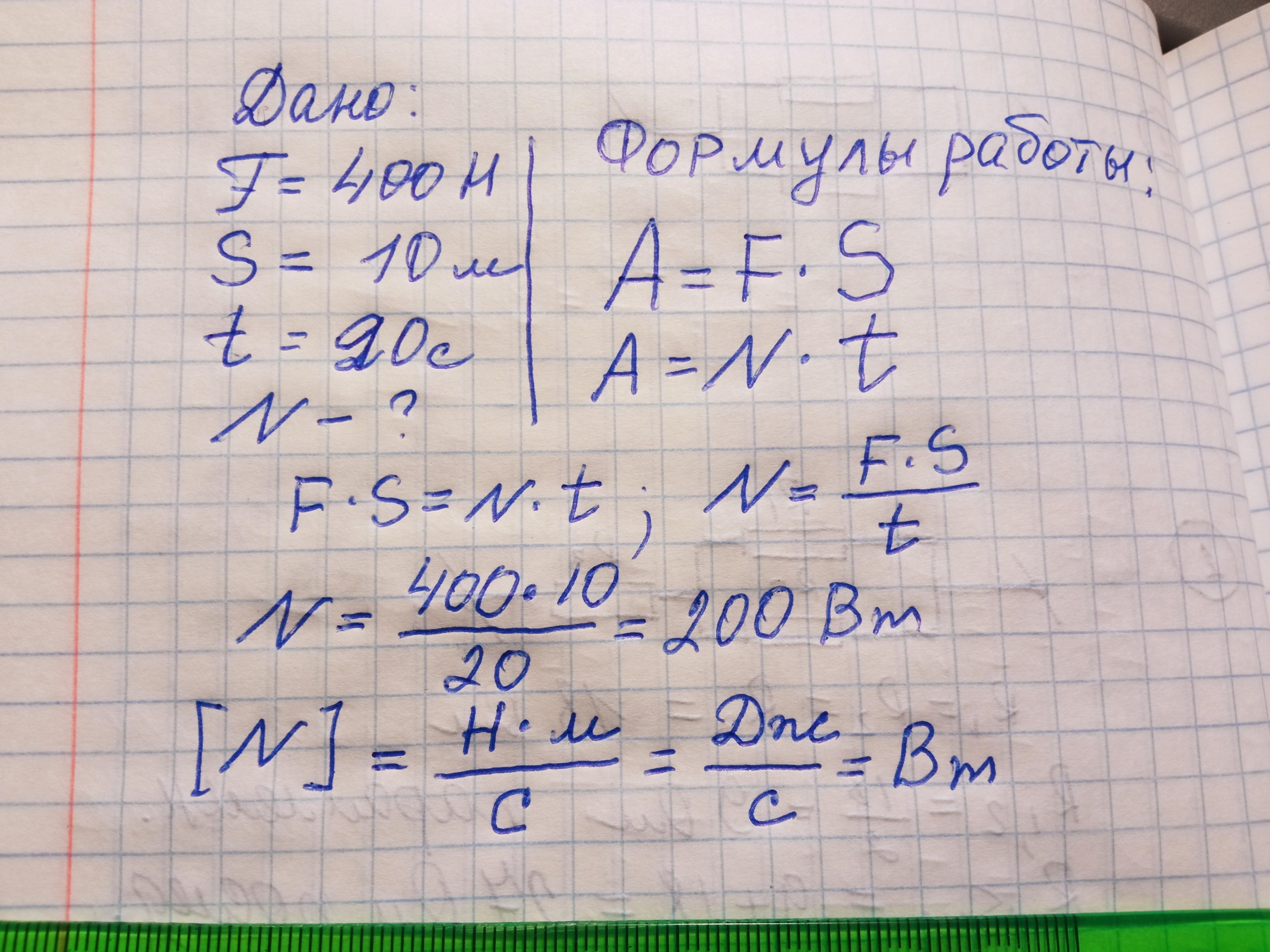 Под действием силы 400 Н тело переместилось по направлению действия силы на 10 м за 20 С. Какой будет мощность этой силы? Переводчик.