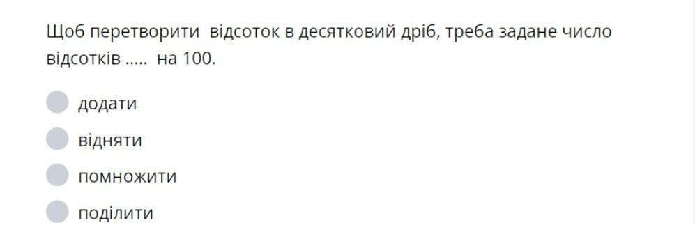 Щоб перетворити відсоток в десятковий дріб, треба задане число відсотків ..... на 100.