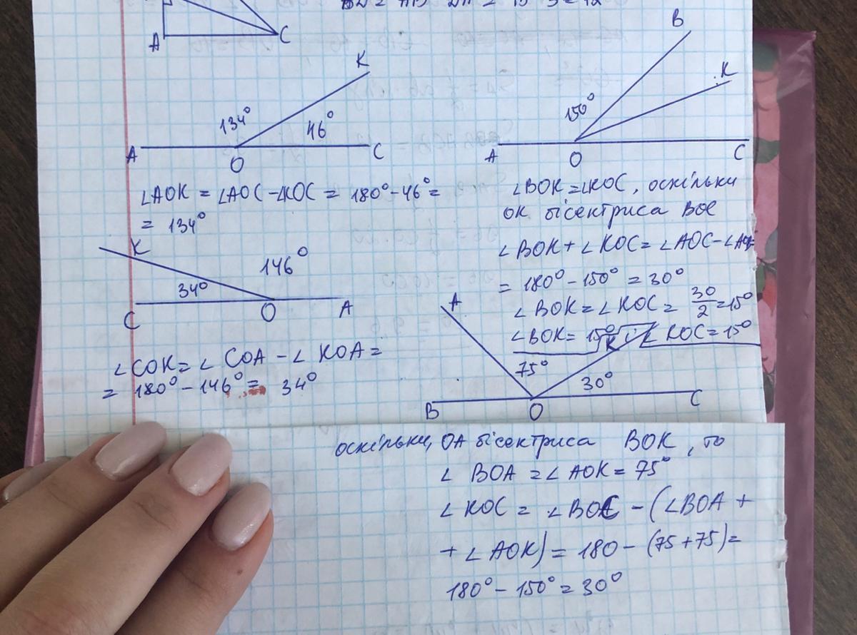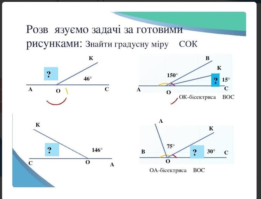 Там у 4 малюночку є помилка, оскільки ОА не може бути бісектрисою ВОС, ОА є бісектрисою ВОК