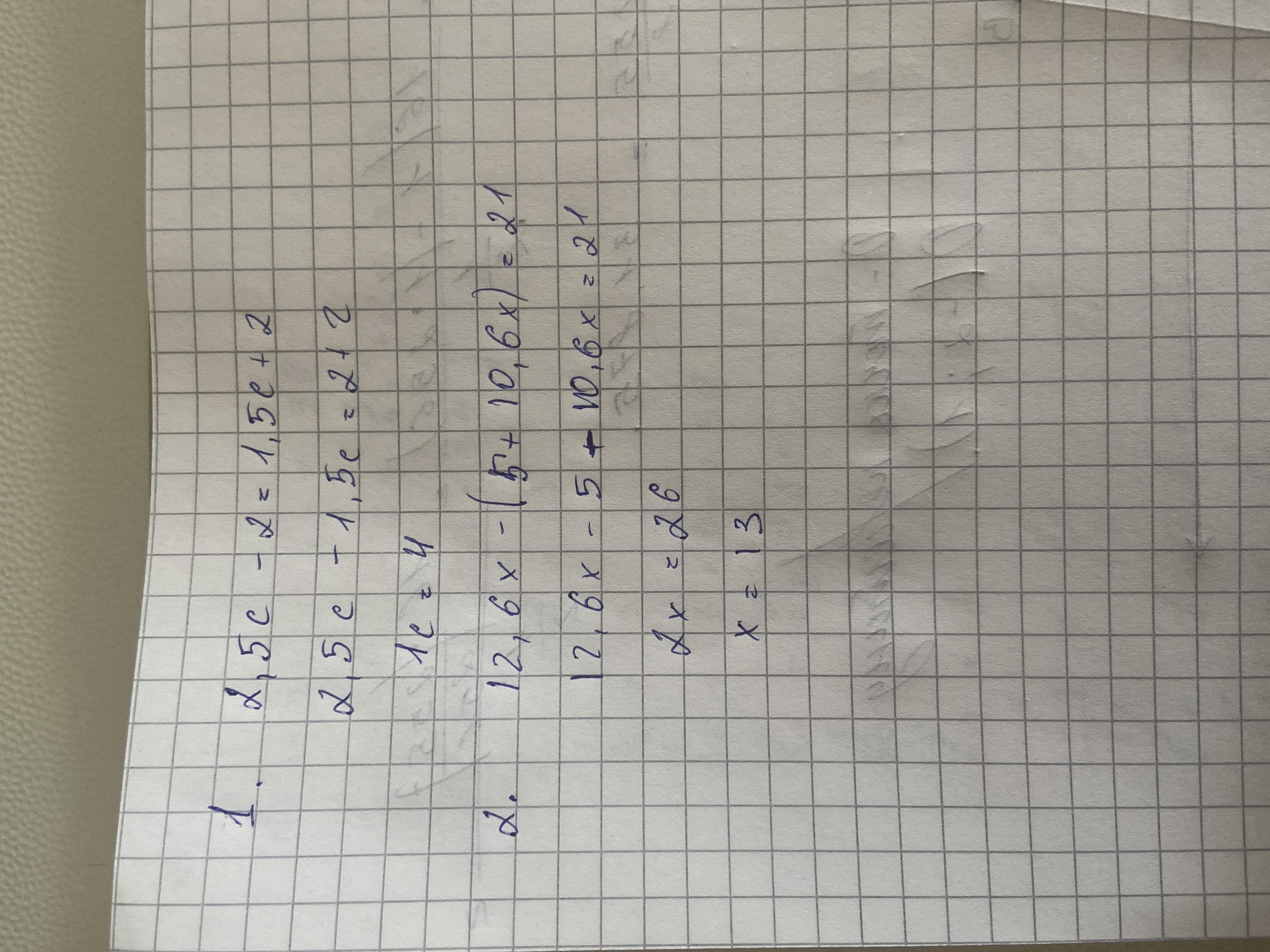 2. Найдите корень уравнения: 12,6x-(5+10,6x)=21