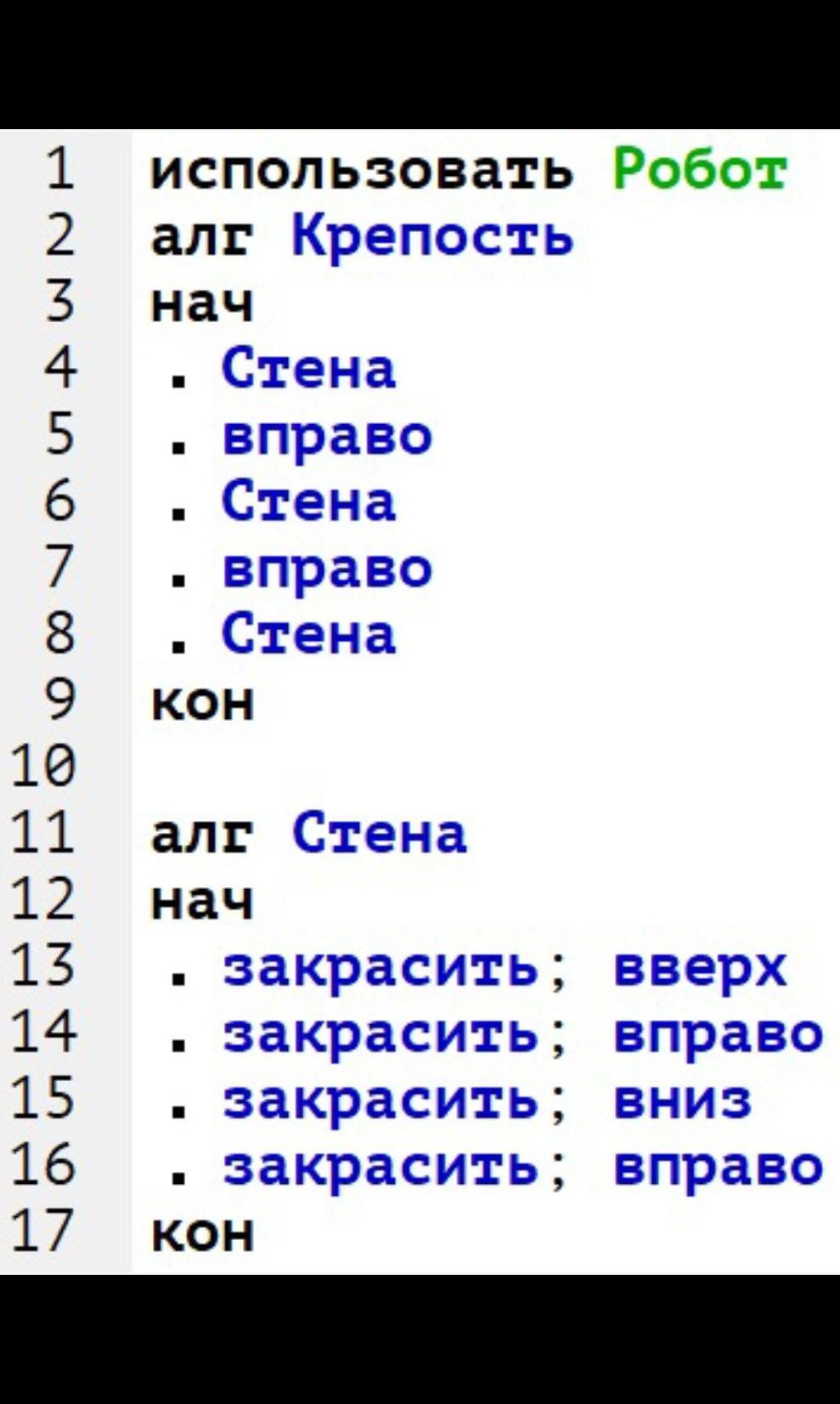 Макс решил нарисовать крепость с помощью исполнителя Робот. Начальное положение робота не известно, но известно, что алгоритм выполнился полностью, без ошибок и Робот не разбился. Определите, сколько клеток будет закрашено в результате выполнения алгоритма.