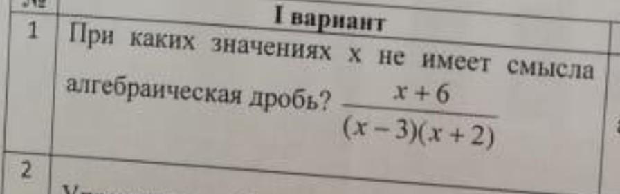 І вариант п 1 При каких значениях х не имеет смысла | П; алгебраическая дробь? х+6 ал (x - 3)(x + 2) 2