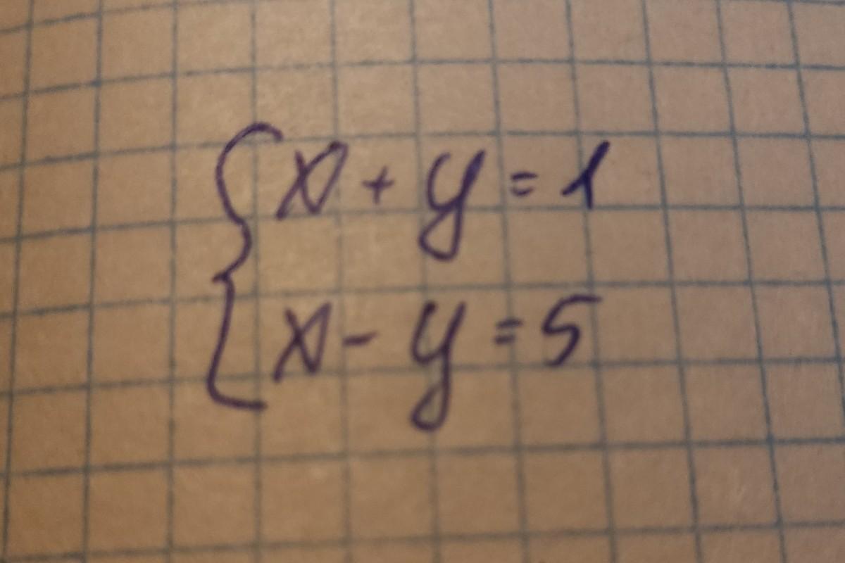 Сума двох чисел дорівнює 1 причому одне з них на 5 більше від другого.Нехай більше число дорівнює x а менше y.Яка система рівнянь відповідає умові задачі