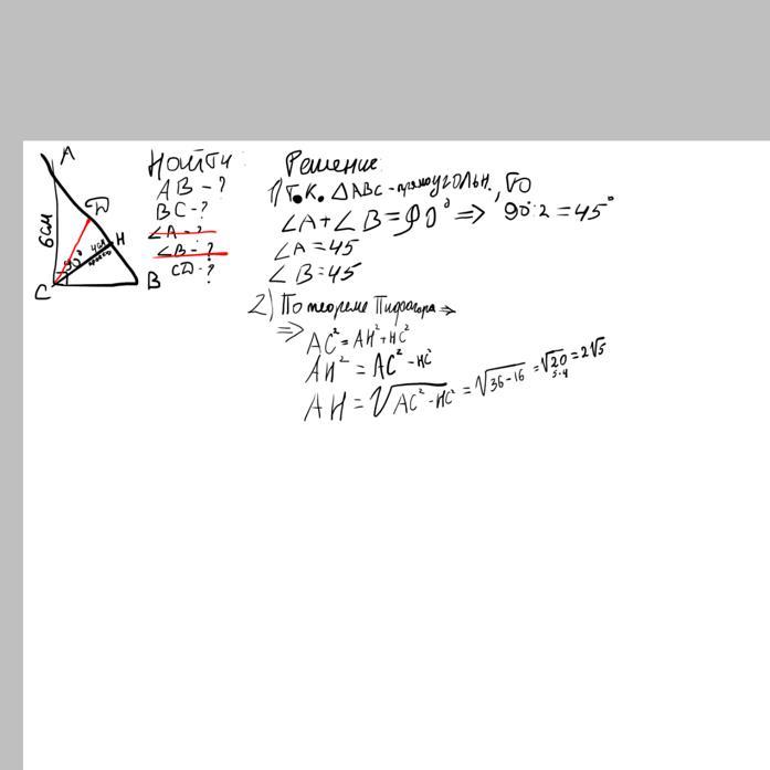 СРОЧНО ДАЮ 35 БАЛЛОВ!!! Катет AC прямокутного трикутника ABC (кут C = 90 градусів) дорівнює 6 см, а його проекція на гіпотенузу дорівнює 4 см. Знайдіть сторони трикутника ABC, висоту, проведену до гіпотенузи, та кути трикутника.