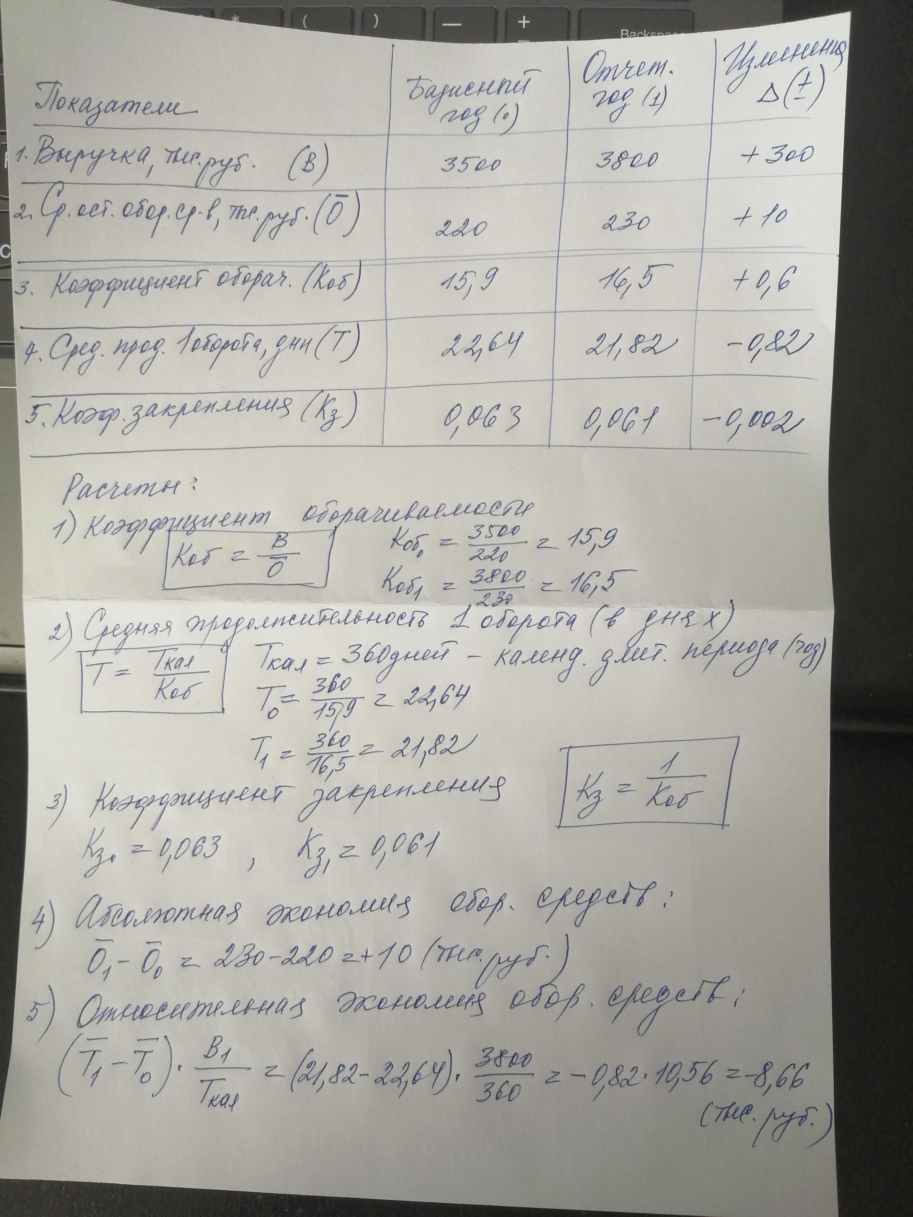 Полученный знак "минус" в результате вычисления относительной экономии оборотных средств обозначает экономию и это хорошо (если бы был "плюс", то он бы обозначал перерасход стредств).