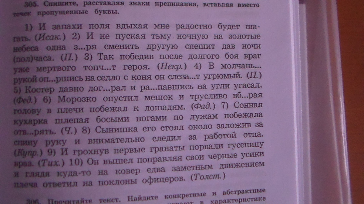 8) Сынишка его стоял около ,заложив за спину руку, и внимательно следил за работой отца. 9) И, грохнув, первые гранаты порвали гусеницу враз. 10) Он вышел, поправляя свои черные усики, и, глядя куда-то на ковер, едва заметным движением плеча ответил на поклоны офицеров.