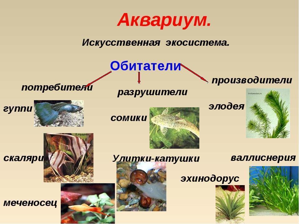 Пищевая цепь аквариума с продуцентами редуцентами консументами