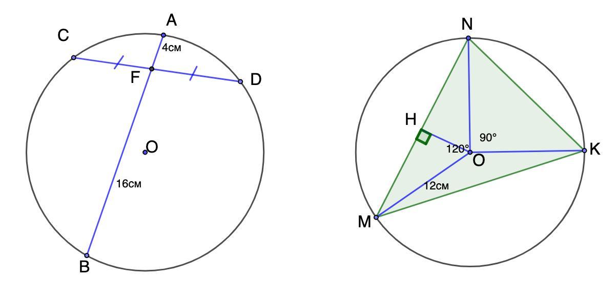 R = 12 см; ∠MON = 120°; ∠NOK = 90°.