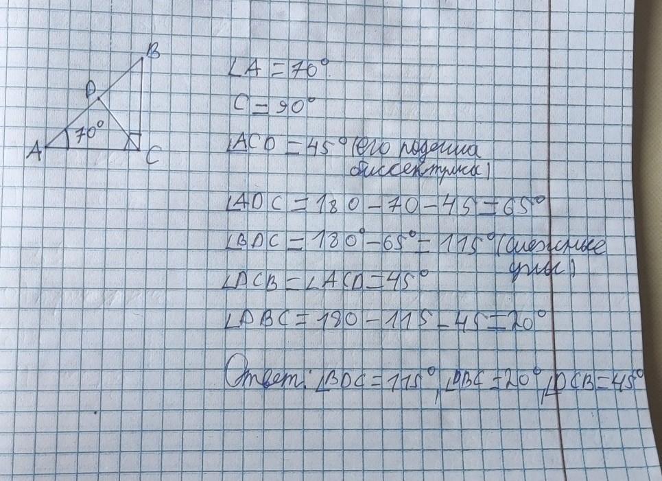 3. В треугольнике BCD: угол DCB = 45 градусов, угол DВС (угол В) = 20 градусов.