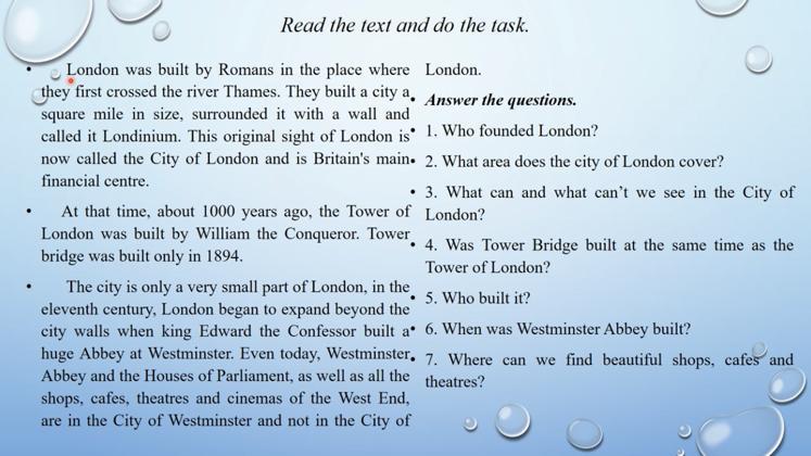 слева нужно прочитать текст, а справа ответить на вопросы, ответ нучно записать полностью