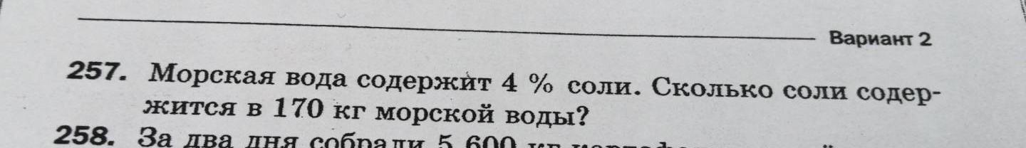 Морская вода содержит 4 % соли. Сколько соли содер- жится в 170 кг морской воды?