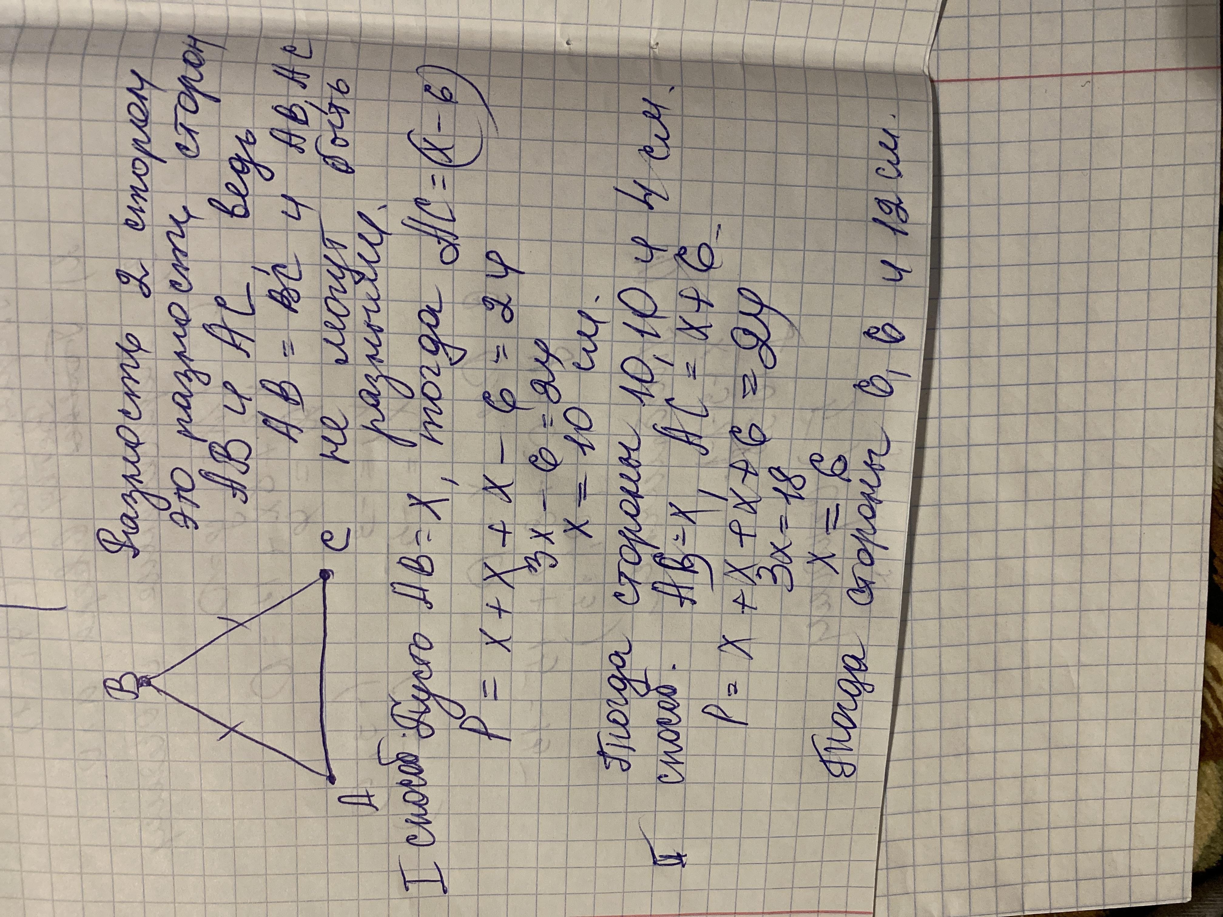 Периметр равнобедренного треугольника равен 24 см, разность двух сторон — 6 см. Найдите длину большей стороны треугольника.
