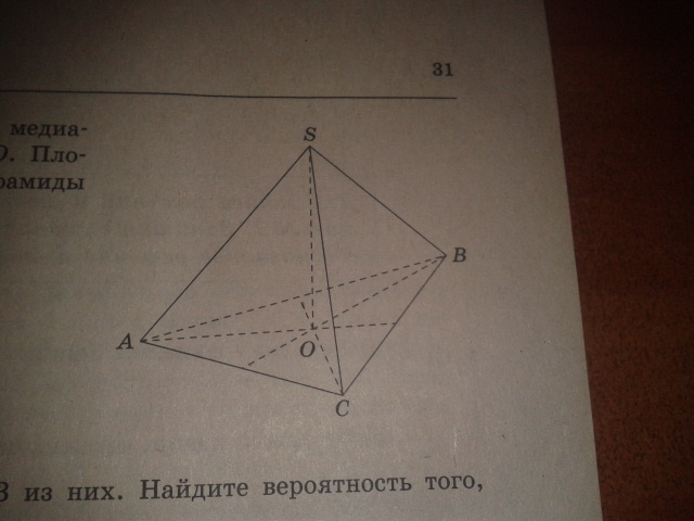 в правильной треугольной пирамиде SABC медианы основания ABC пересекаются в точке O. площадь прямоугольника равна ABC равна 2; объем пирамиды равен 6. найти длину отрезка