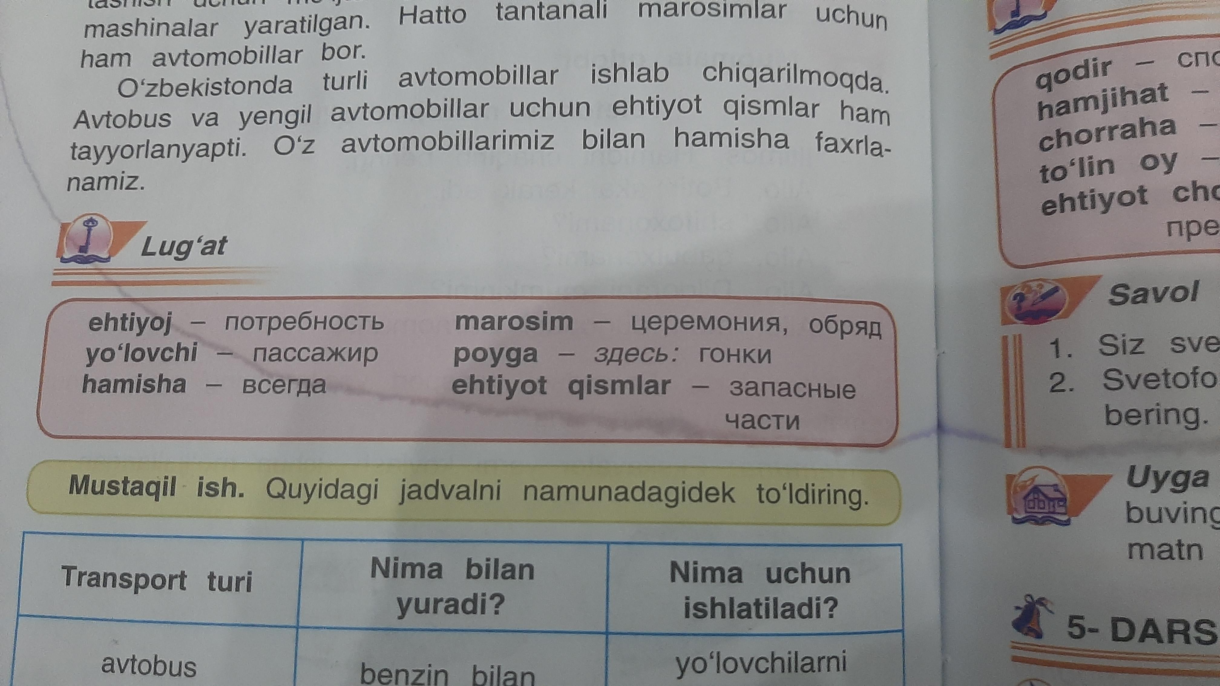 5.Har bir mashinada ehtiyot qisimlar bo‘lishi kerak.