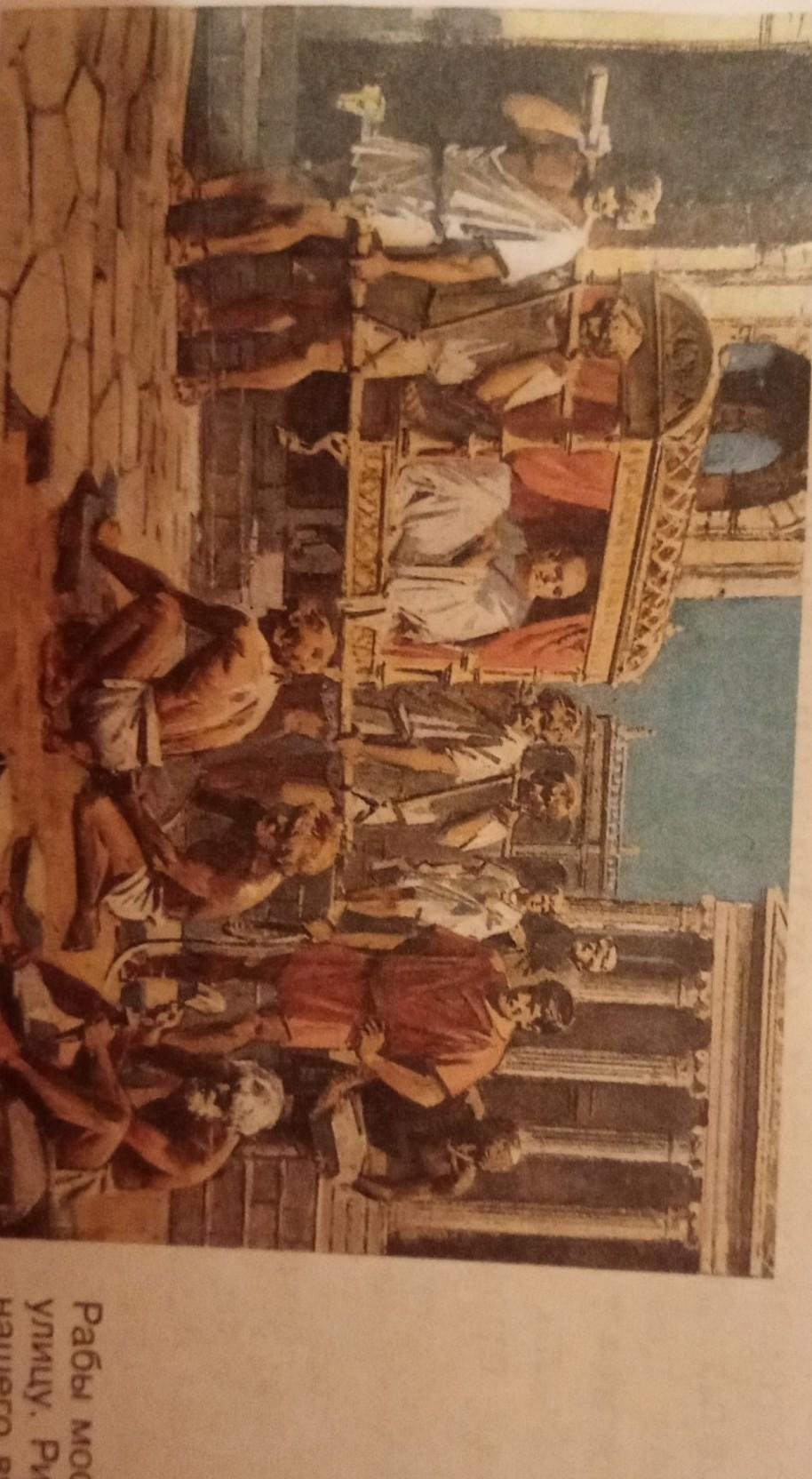 На данный картинке изображён древний Рим. Это можно понять по архитектуре и людям. По одежде и расположение видно, что человек в "карете" знатный господин. Так же тут изображены рабы. Понять это можно по их несчастному виду. В древнее времена рабство было вполне естественным делом. Каждый знатный человек имел своих рабов