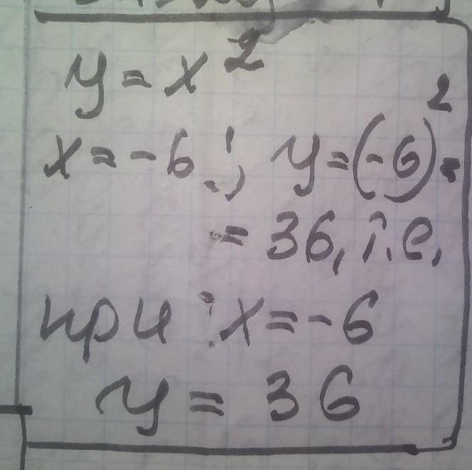 для функції y=x2 знайдіть значення y яке відповідає значенню x= -6