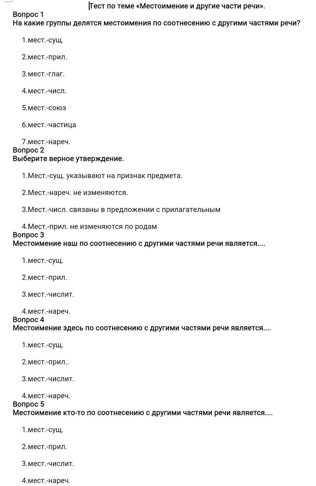 По соотношению с другими частями речи выделяют следующие 4 группы местоимений: