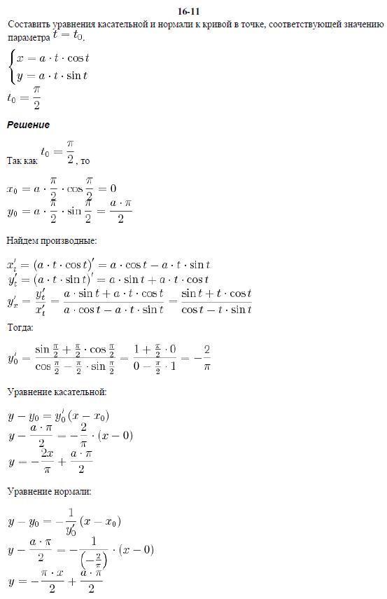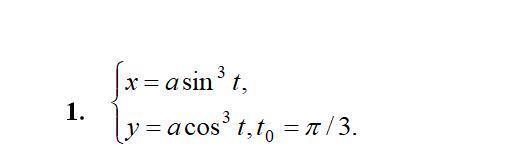 Составить уравнения касательной и нормали к кривой в точке, соответствующей значению параметра t=t0.