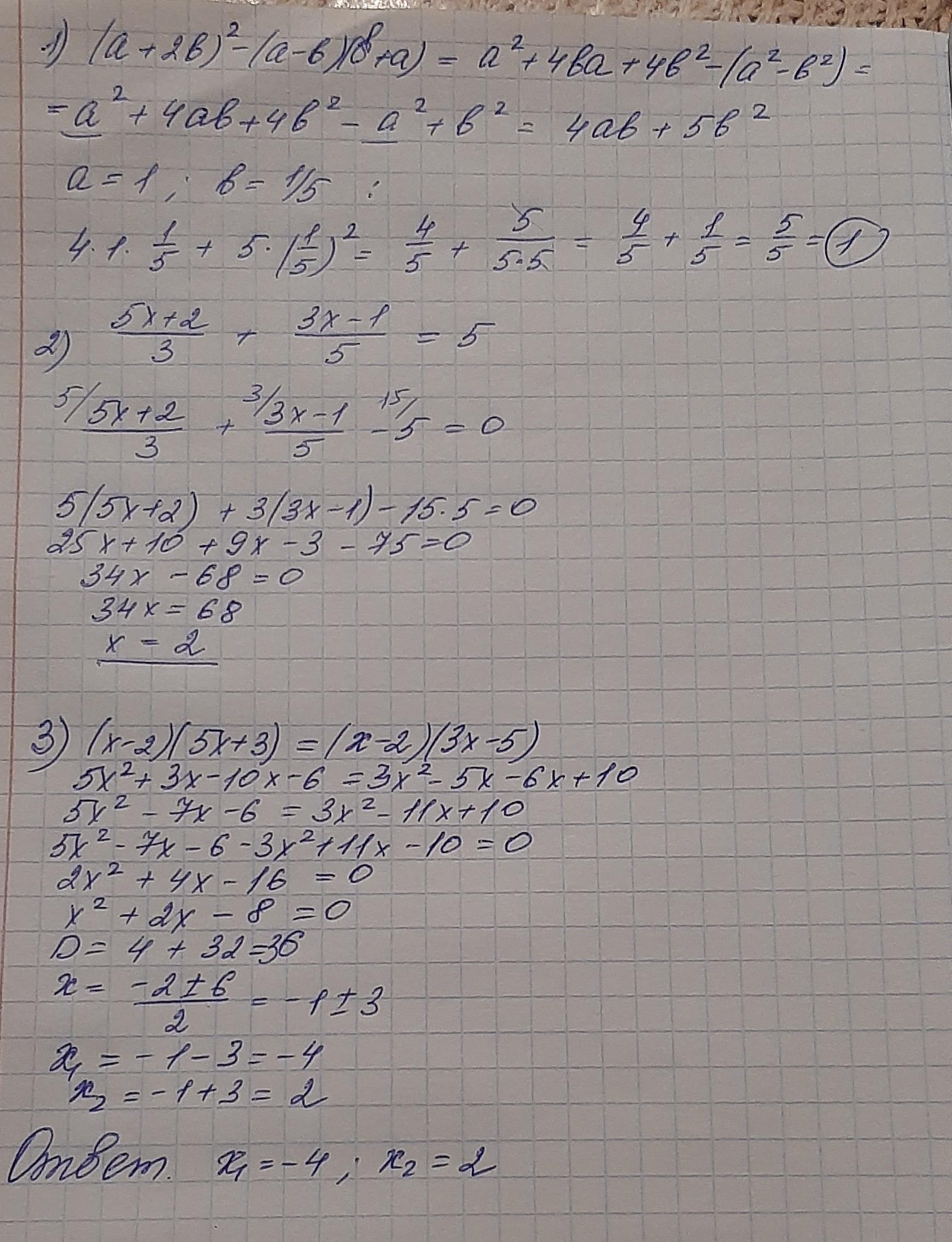 (а+2в)² -(а-в)(в+а) и найти его значение при а=1 и в 1/5 - (1/5 это дробь типо )