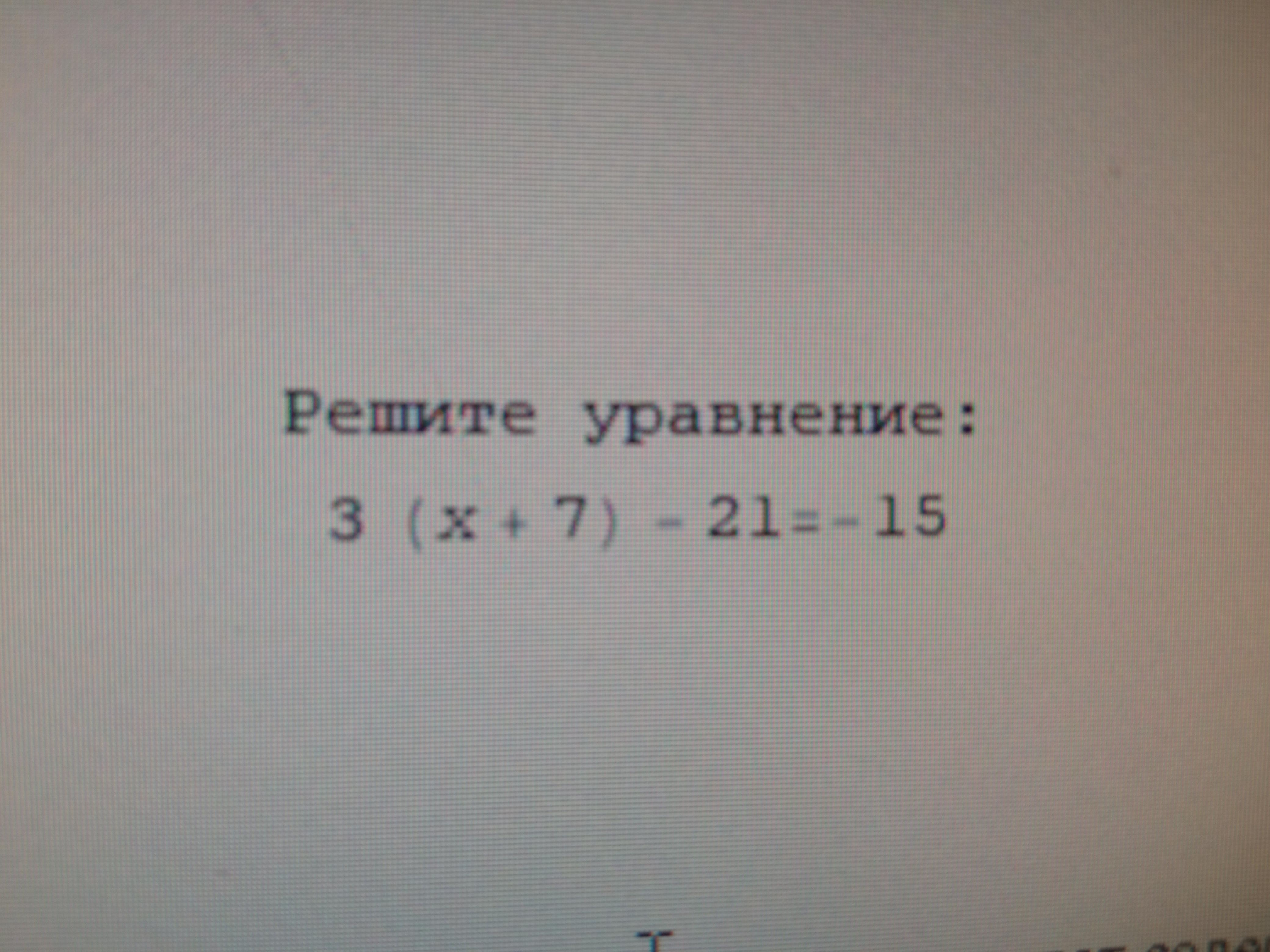 Три икс плюс семь минус двадцать один равно минус 15, +21 и -21 будут равны 0 вот и получаеться x=-3