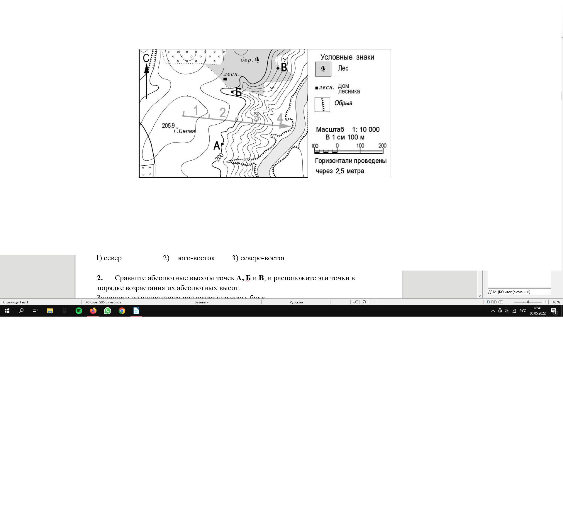 2. Сравните абсолютные высоты точек А, Б и В, и расположите эти точки в порядке возрастания их абсолютных высот.