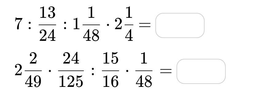 7\div\frac{13}{24}\div1\frac{1}{48}\cdot2\frac{1}{4}=7\div\frac{26}{49}\cdot2\frac{1}{4}=13\frac{5}{26}\cdot2\frac{1}{4}=29\frac{71}{104}=29\frac{71}{104}\approx29.6