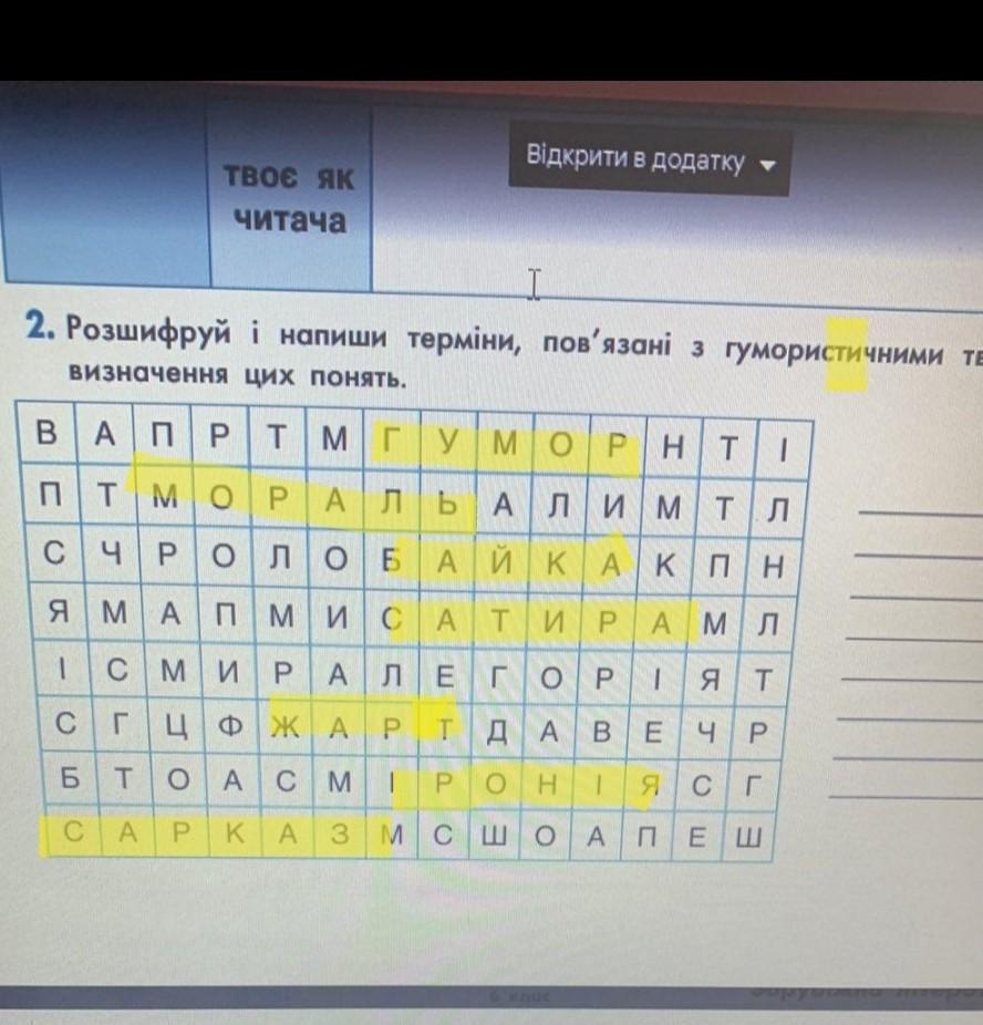№2Розшифруй і напиши терміни, пов’язані з гумористичними творами. Пригадай