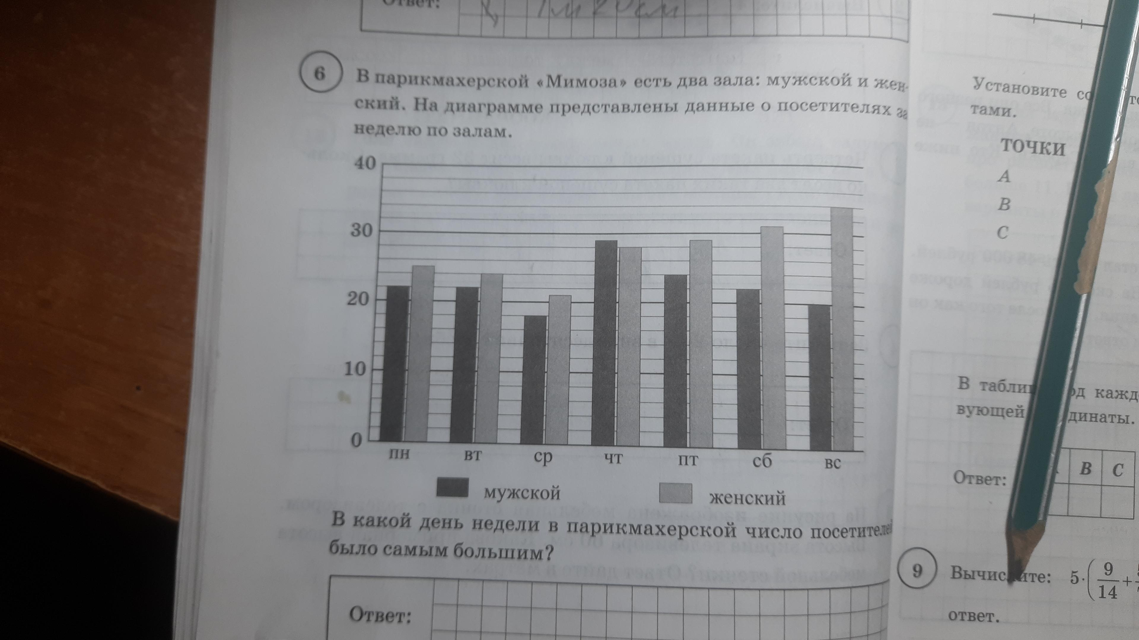 В пятницу в парикмахерской число посетителей было самым большим (53).