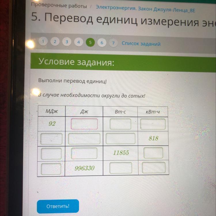 МДж Дж Вт*с кВт*ч