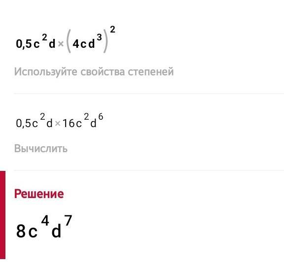 =0, 5c²d × 16c²d (в шестой) =8с⁴d(в седьмой)
