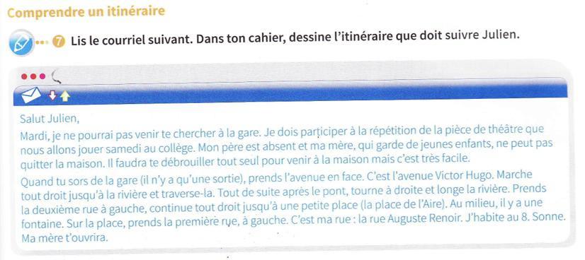 идёшь до реки (я плохо поняла), идёшь по мосту, поворачиваешь направо, потом поворачиваешь на вторую улицу слева, продолжаешь идти справа (плохо поняла) до площади Эр, посередине есть фонтан, на площаде идёшь по первой улице слева и там ее улица Огуст Реноар 8