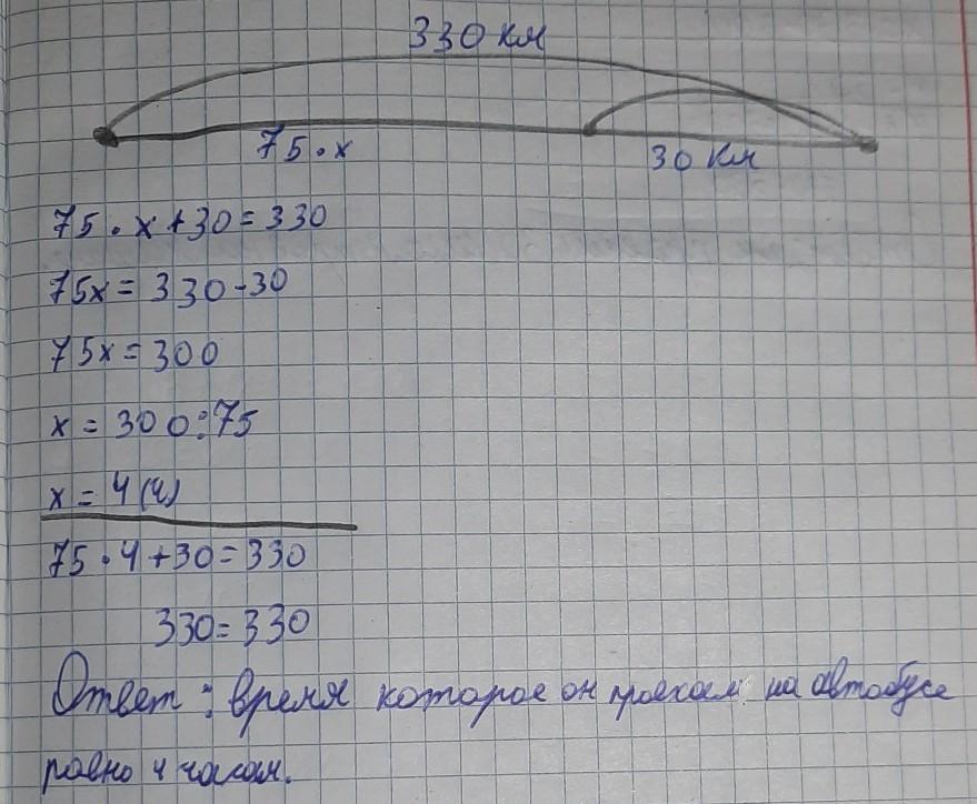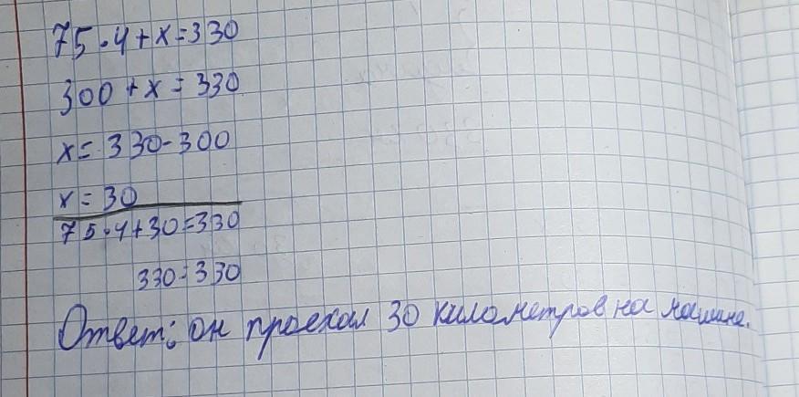 Урок 150 .Составные задачи РАБОТА В ГРУППЕ подбери уравнение 3 Найди к каждой задаче схему и навтов 6. на автобусе, который шёл СО Скоростью 75 км/ч. Затем на го а) Расстояние между городом и центром ПОДГОТОВКИ «Осло, 330 км. Курсант выехал из города в центр Сначара путной машине он проехал оставшиеся 30 КМ. СКОЛЬКО из города в центр, курсант ехал 4 часа на автобусе со скоро- б) Расстояние от города до центра — 330 КМ. Чтобы попасть стью 75 км/ч. Оставшийся путь Он проехал на машине. Какое мени он ехал на автобусе? расстояние проехал курсант на машине? 7 2) 330 КМ 1) 330 км t=ДЧ 75 . Х 30 КМ 75 КМ 75 КМ 75 КМ 75 КМ 75 х - 30 = 330 75.4 + x = 330 ЖКМ 75x + 30 = 330 x - 75.4 = 330 -