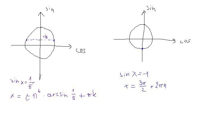 x1 = (-1)^k * arcsin(1/6) + πk, k - целое