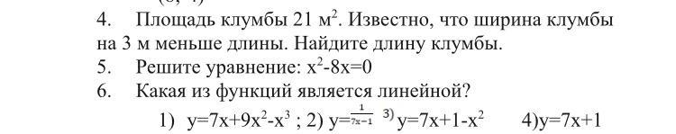6. 4) y=7x+1 является линейной, т.к. только она имеет вид линейной функции у=кх+b, где к и b - некоторые числа.